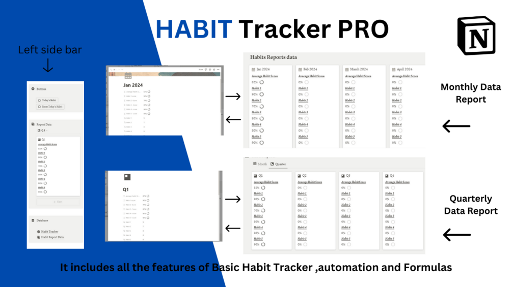 It Gives you Monthly and Quarterly Visuals' data For Each Habit so Keep in Loop with the Progress