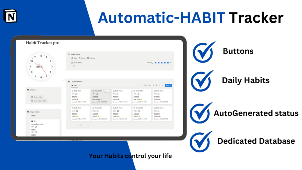 This Automatic habit report generator makes it easy to track your progress on your daily habits.